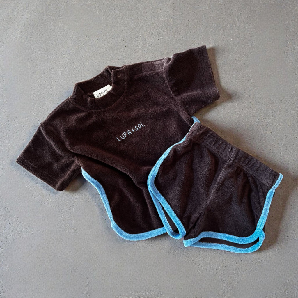 Loose fitting with an elasticated waistband and retro style trims around hems.
