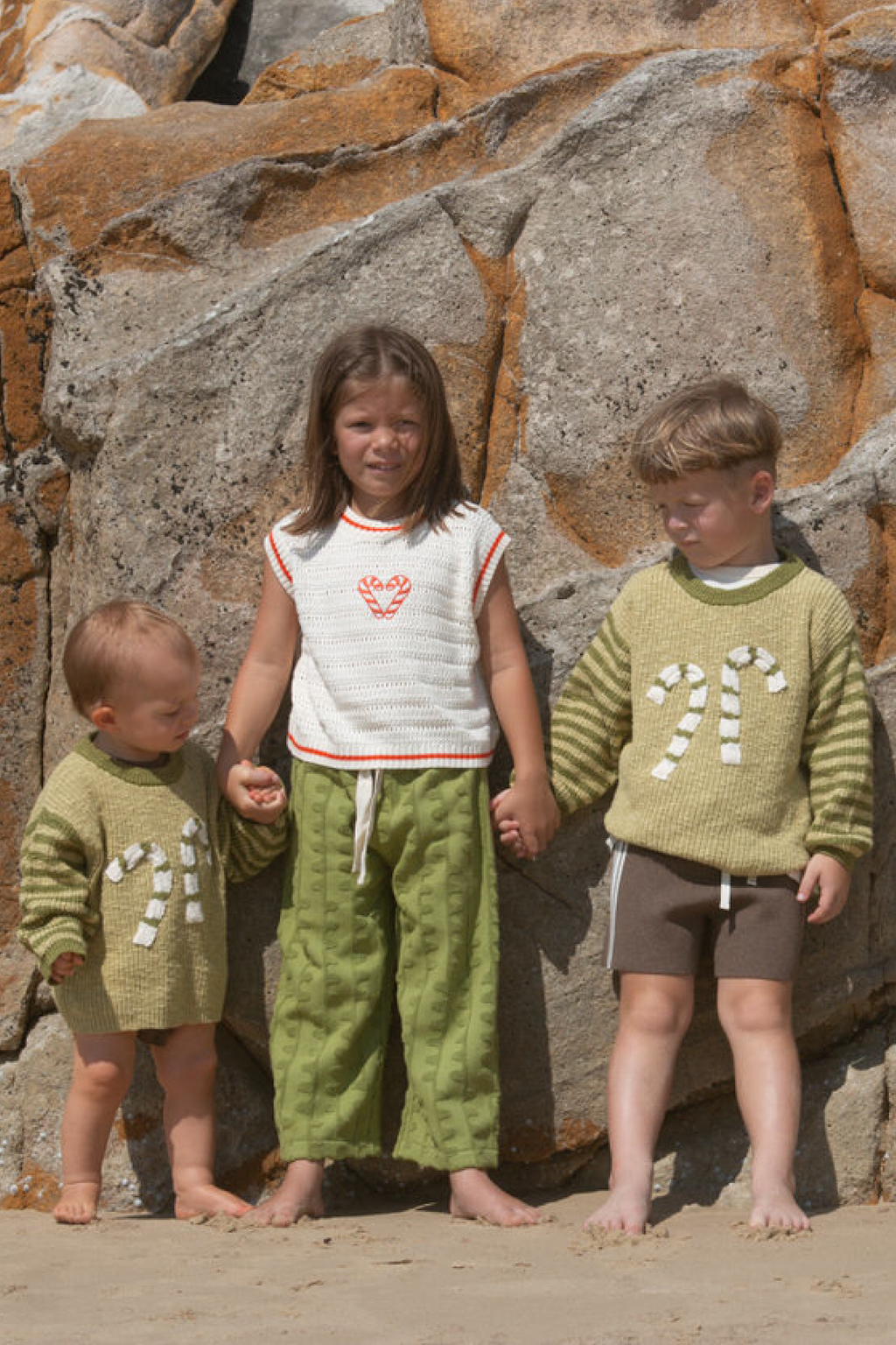 • Knitted candy cane appliqué design detail