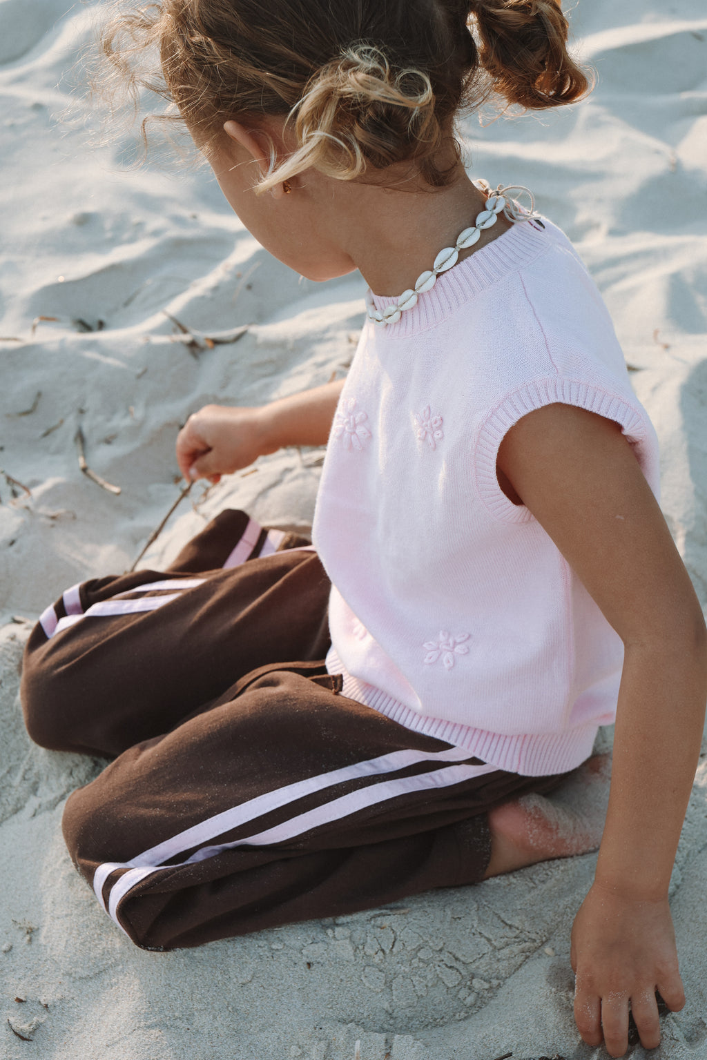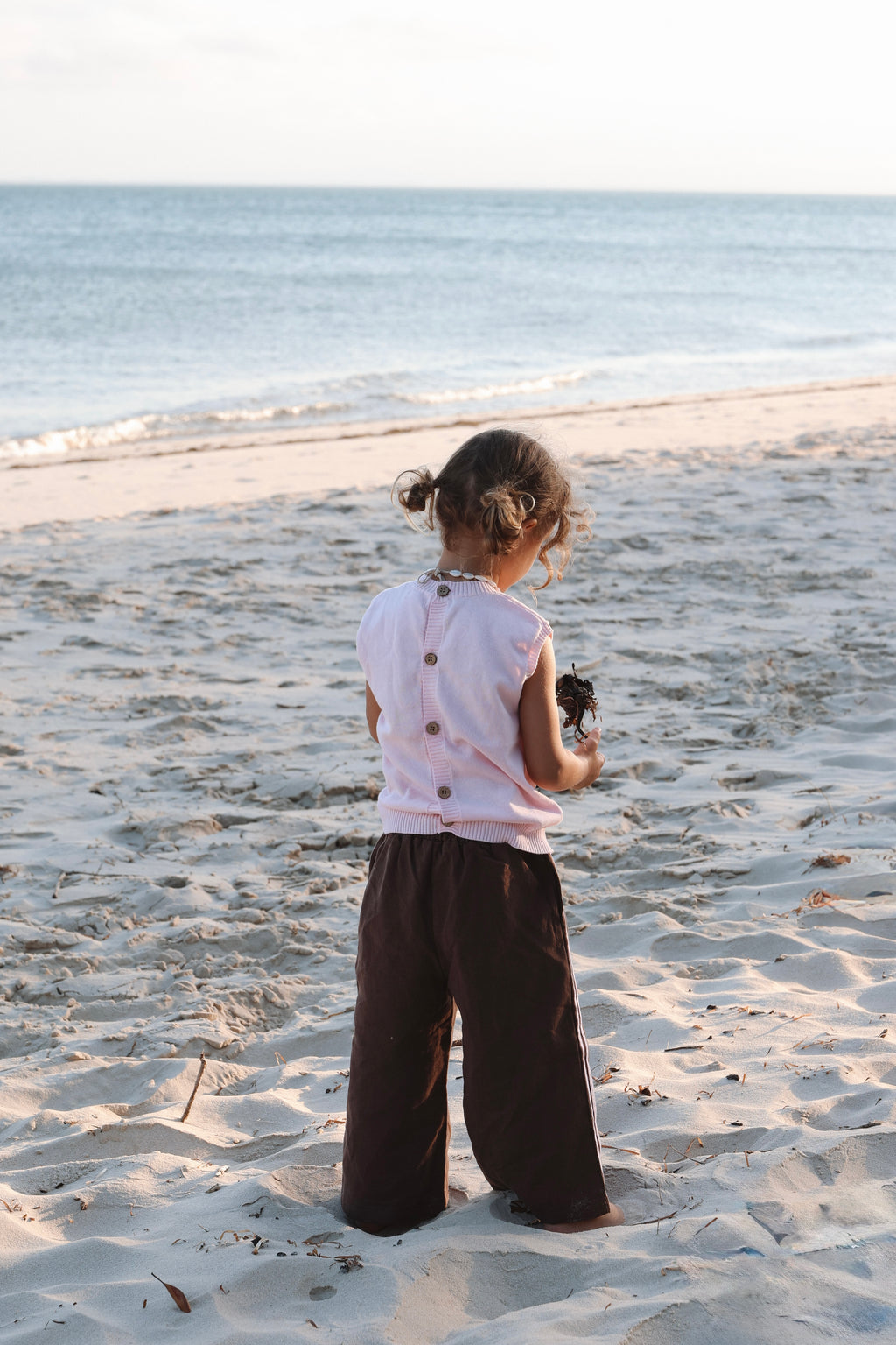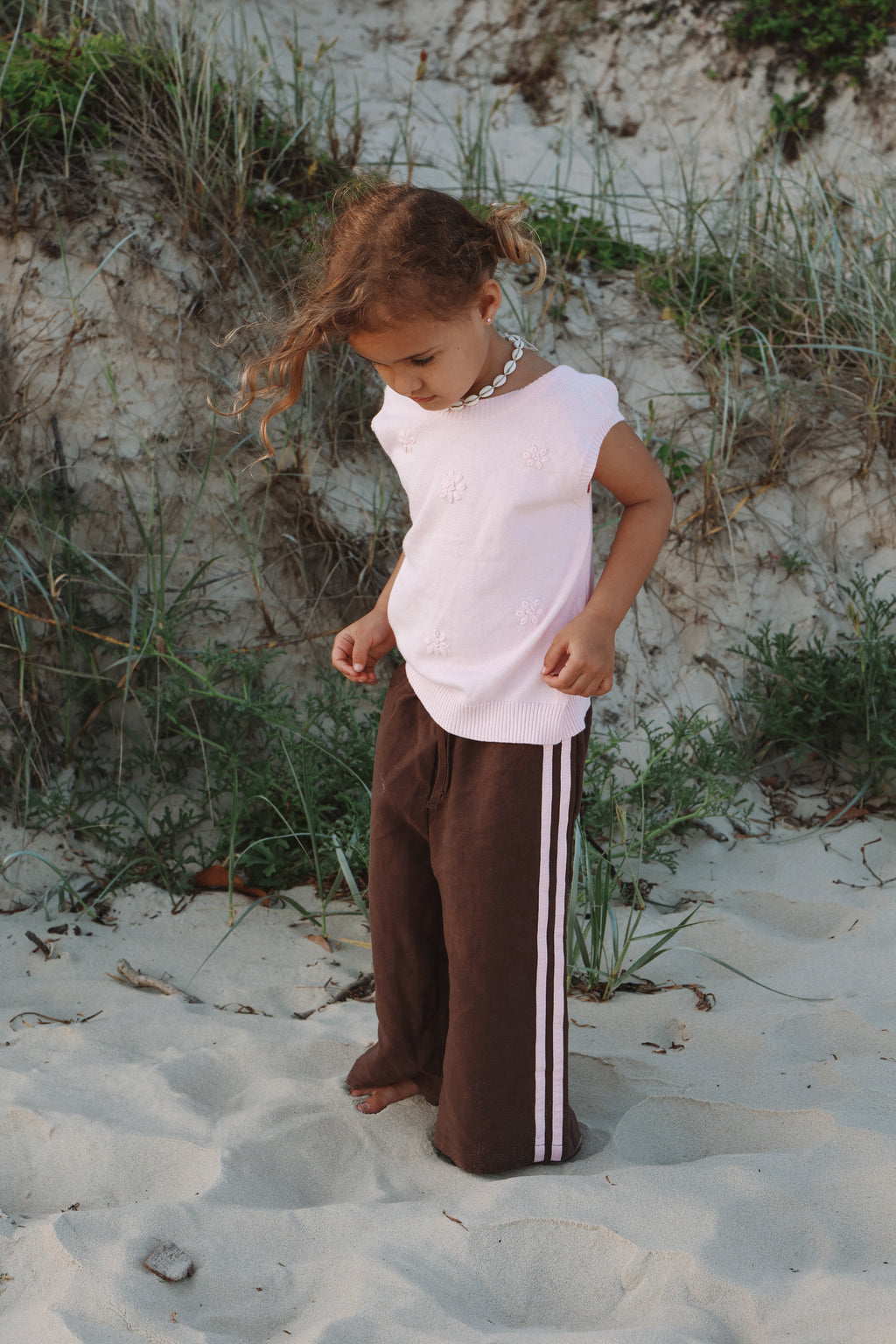 With a back to front style with coconut button going down the back and sweet hand embroidered flowers on the front.