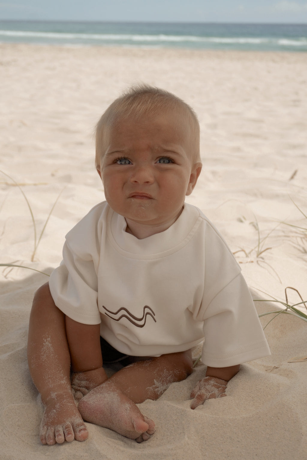 A buttery soft tee for comfort with our exclusive brand + wave embroidery