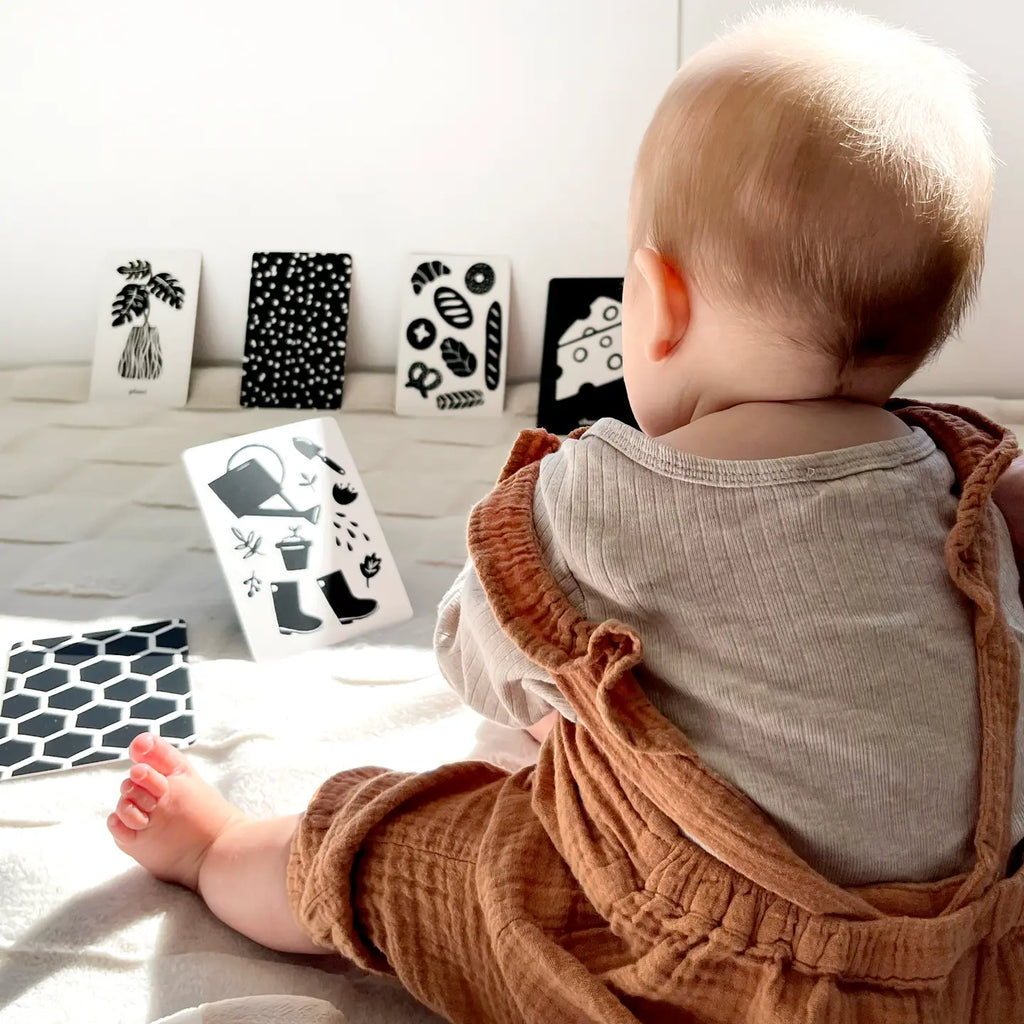Featuring bold, black and white illustrations of foods, animals, plants and patterns, each card is designed to capture baby’s attention and engage their growing mind. High contrast imagery is proven to help develop focus, visual tracking and early recognition skills, making this set a perfect companion for tummy time, changing time and on-the-go play from the newborn stage and beyond.