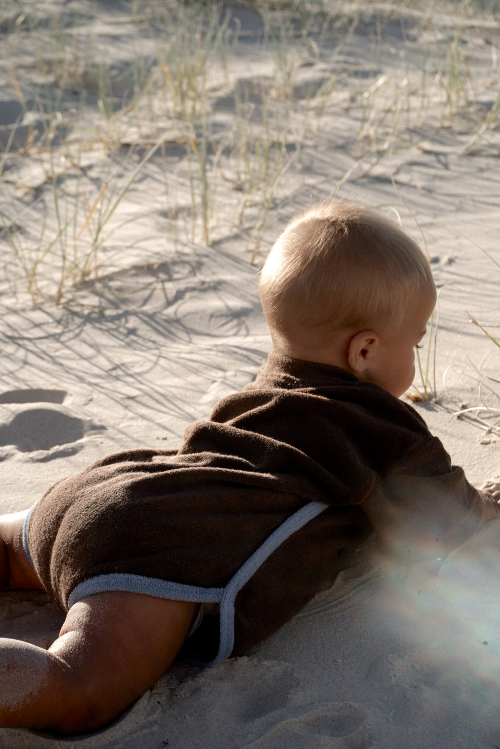 Featuring our signature logo on the front, retro style trims, crotch snaps for easy changes and snaps at neck.