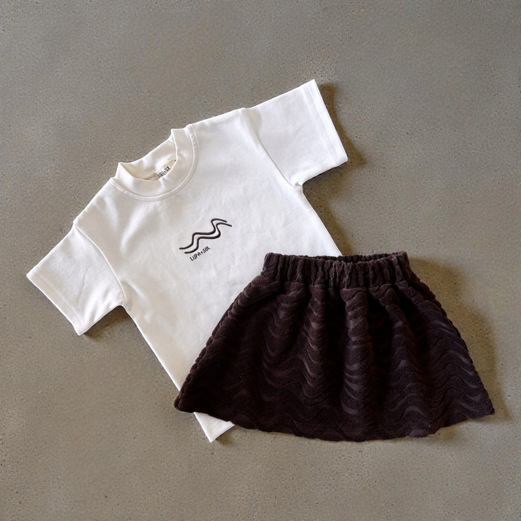 Our Wave Terry Skirt featuring a wave embossed fabric and elasticated waistband. Matches perfectly with our Terry Wave Crop Singlet.