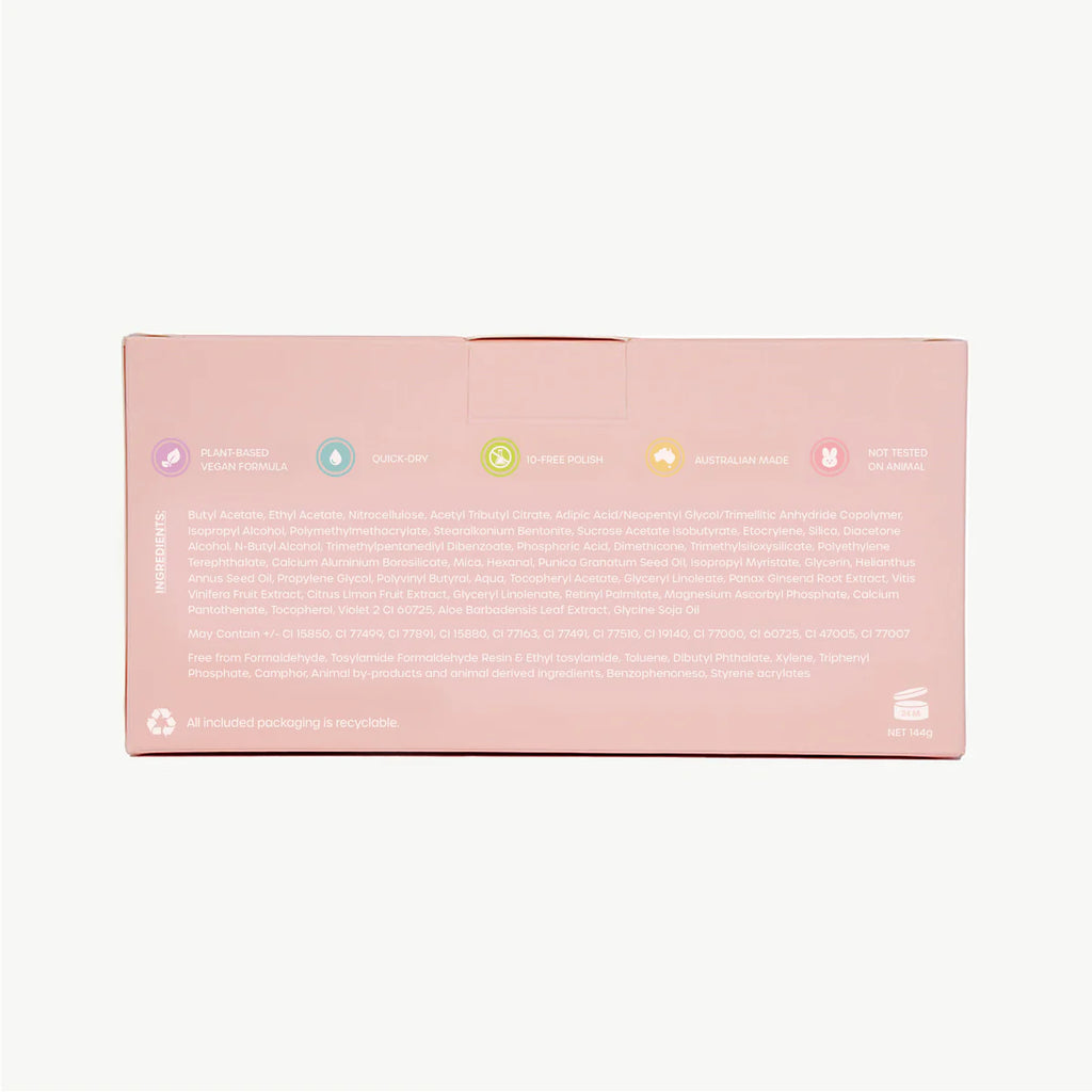 Our Oh Flossy Kids’ Nail Polish is made with a plant-based, breathable formula that’s vegan-friendly, Halal-certified, sustainable and 10-Free — meaning it’s free from ten of the most common toxic ingredients found in regular nail polish. Designed especially for little nails, it’s gentle, durable and low-tox, offering beautiful colour without compromise.