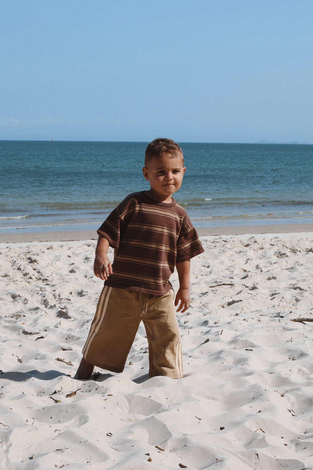 Knitted Stripe Tee - Espresso + Latte