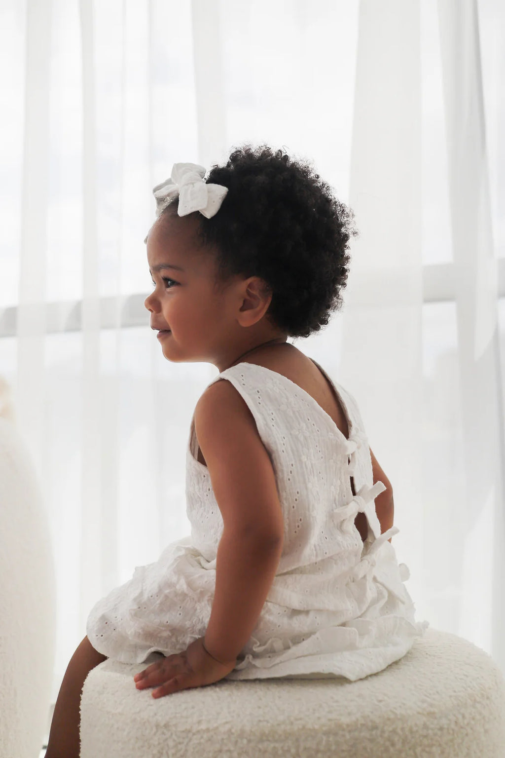 Cotton singlet in our Laurel broderie anglaise fabric. Functional ties down the middle, can be worn in reverse. Mix and match with items from our Christmas Collection.