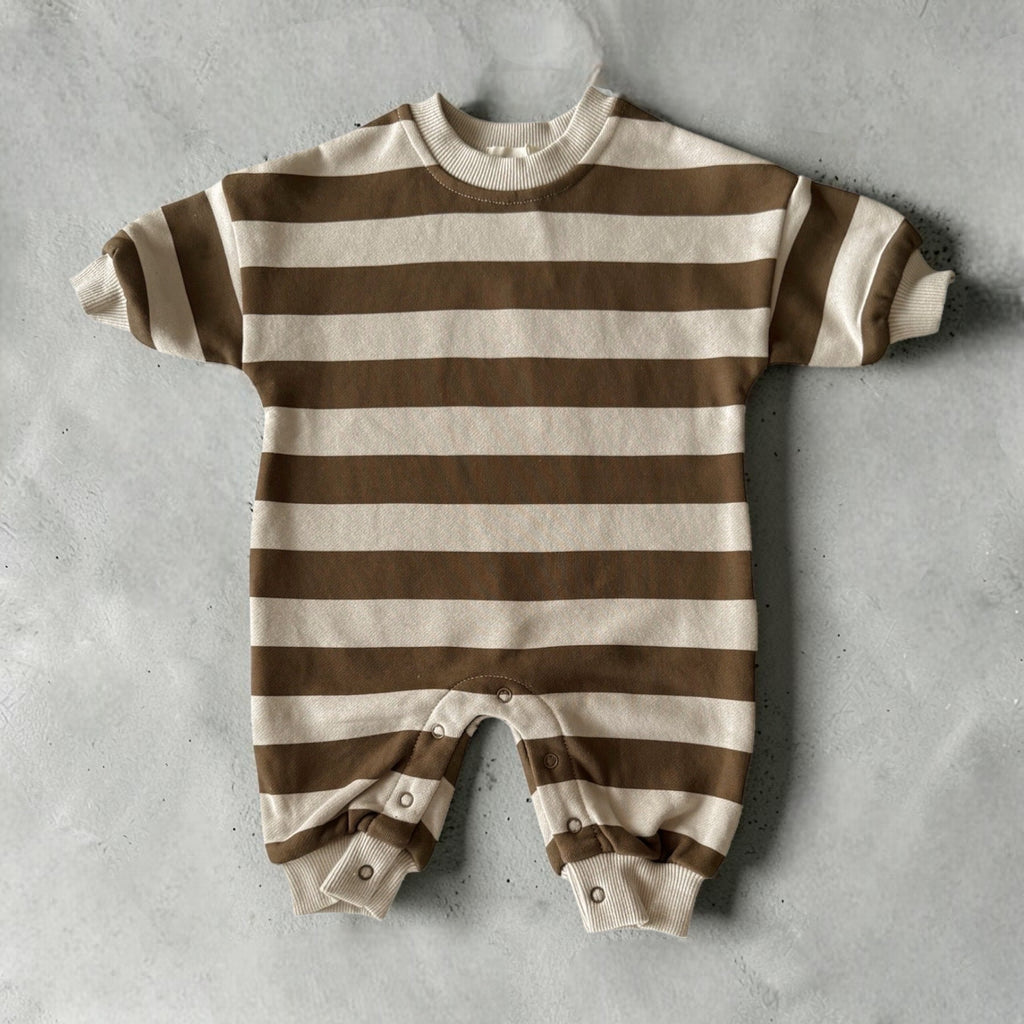 PRE ORDER French Terry Romper | Walnut Stripe